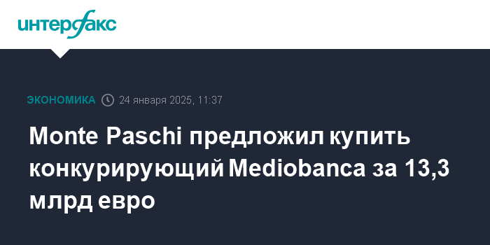 Итальянский банк Banca Monte dei Paschi di Siena сделал предложение о приобретении более крупного конкурента — Mediobanca Banca di Credito Finanziario за 13,3 млрд евро.