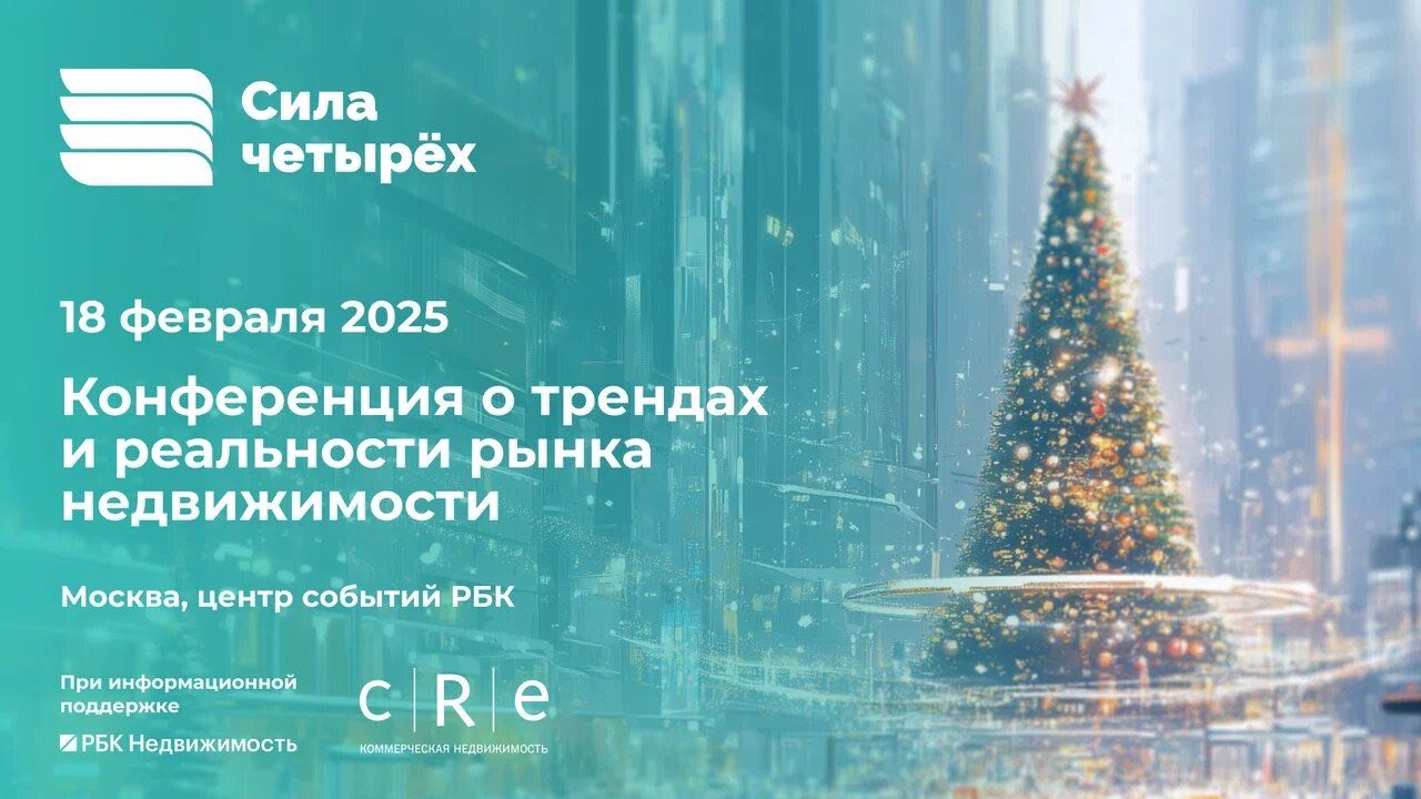 18 февраля 2025 года в Центре событий РБК пройдет стратегическая конференция «Сила четырех: тренды и реальности рынка недвижимости».